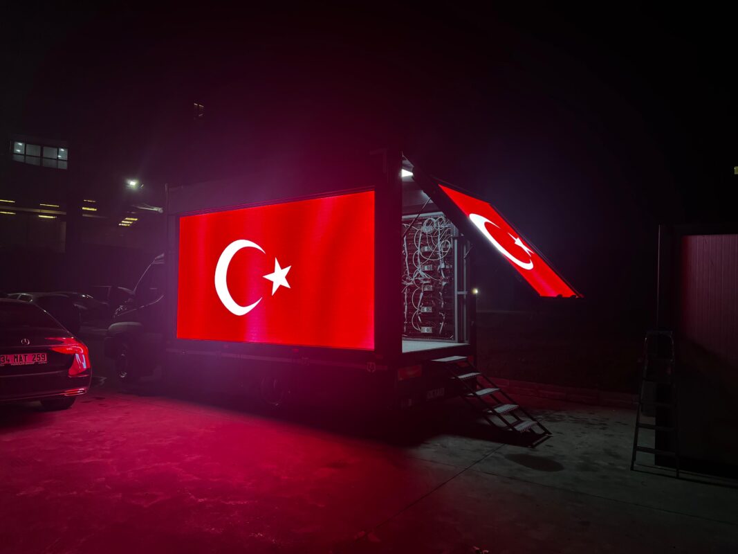 P3.0mm dış mekan LED ekran ile aracın 2 cephesi ve açılabilen arka kapağı kapağı uzaktan yönetilebilen mecraya dönüştürülmüştür.